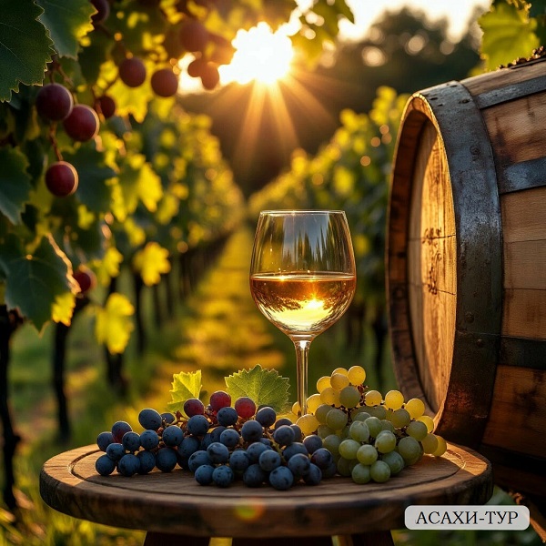 Экскурсия по заводу и дегустация 7 видов вина и коньяка. Там же можно купить вино.